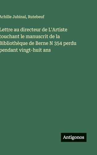 Lettre au directeur de L'Artiste touchant le manuscrit de la Bibliothèque de Berne N 354 perdu pendant vingt-huit ans (French Edition) full version