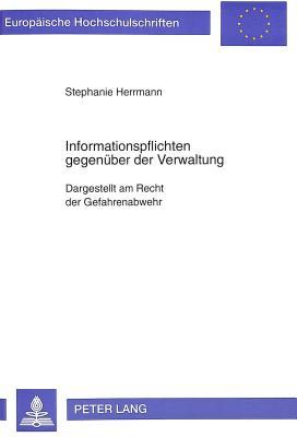 Informationspflichten gegenuber der Verwaltung: Dargestellt am Recht der Gefahrenabwehr (European university studies. Series II, Law) full version