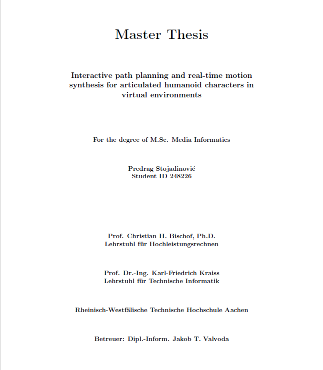 Interactive path planning and real-time motion synthesis for articulated humanoid characters in virtual environments full version