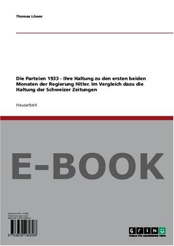Die Parteien 1933 - Ihre Haltung zu den ersten beiden Monaten der Regierung Hitler. Im Vergleich dazu die Haltung der Schweizer Zeitungen (German Edition) full version