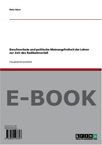 Berufsverbote und politische Meinungsfreiheit der Lehrer zur Zeit des Radikalenerlasses (German Edition) full version