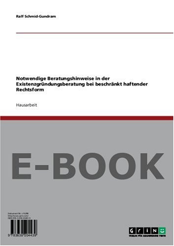 Notwendige Beratungshinweise in der Existenzgründungsberatung bei beschränkt haftender Rechtsform (German Edition) full version