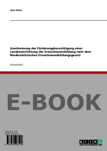 Anerkennung der Förderungsberechtigung einer Landeseinrichtung der Erwachsenenbildung nach dem Niedersächsischen Erwachsenenbildungsgesetz (German Edition) full version