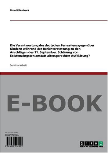 You are about to access our book library "Die Verantwortung des deutschen Fernsehens gegenüber Kindern während der Berichterstattung zu den Anschlägen des 11. September: Schürung von Existenzängsten ... altersgerechter Aufklärung? (German Edition) full version"