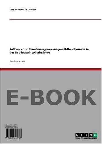 Software zur Berechnung von ausgewählten Formeln in der Betriebswirtschaftslehre (German Edition) full version