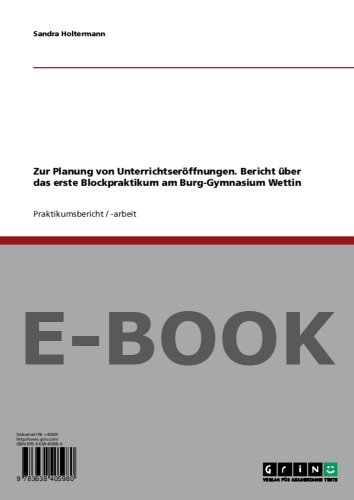 Zur Planung von Unterrichtseröffnungen. Bericht über das erste Blockpraktikum am Burg-Gymnasium Wettin (German Edition) full version