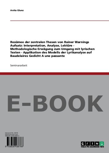 You are about to access our book library "Resümee der zentralen Thesen von Rainer Warnings Aufsatz: 'Interpretation, Analyse, Lektüre – Methodologische Erwägung zum Umgang mit lyrischen Texten': ... Gedicht 'A une passante' (German Edition) full version"