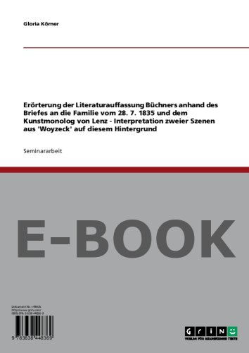 You are about to access our book library "Die Literaturauffassung Büchners anhand des Briefes an die Familie vom 28. Juli 1835 und dem Kunstmonolog von Lenz: Interpretation zweier Szenen aus "Woyzeck" vor diesem Hintergrund (German Edition) full version"