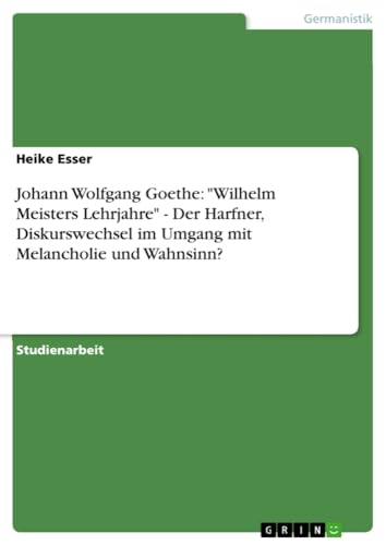 Johann Wolfgang Goethe: "Wilhelm Meisters Lehrjahre" - Der Harfner, Diskurswechsel im Umgang mit Melancholie und Wahnsinn? (German Edition) full version