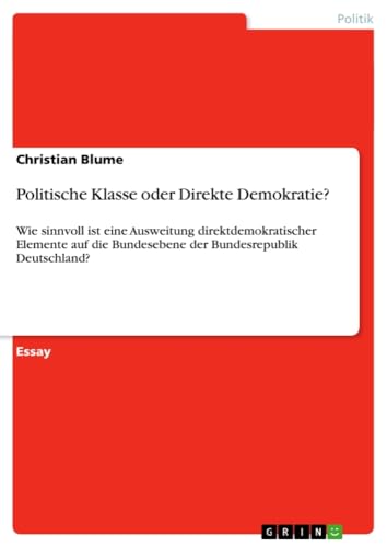 Politische Klasse oder Direkte Demokratie?: Wie sinnvoll ist eine Ausweitung direktdemokratischer Elemente auf die Bundesebene der Bundesrepublik Deutschland? (German Edition) full version