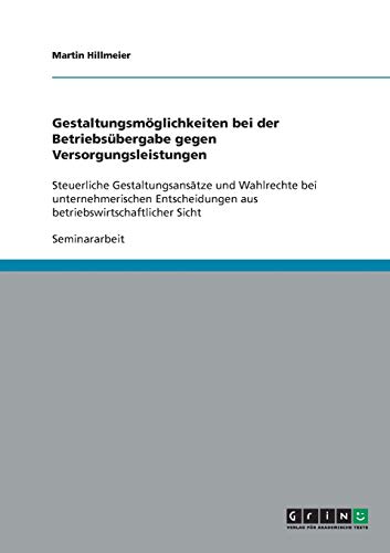 Gestaltungsmöglichkeiten bei der Betriebsübergabe gegen Versorgungsleistungen: Steuerliche Gestaltungsansätze und Wahlrechte bei unternehmerischen ... Sicht (German Edition) full version