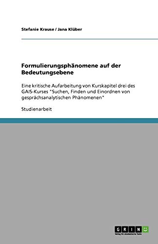 You are about to access our book library "Formulierungsphänomene auf der Bedeutungsebene: Eine kritische Aufarbeitung von Kurskapitel drei des GAIS-Kurses "Suchen, Finden und Einordnen von gesprächsanalytischen Phänomenen" (German Edition) full version"