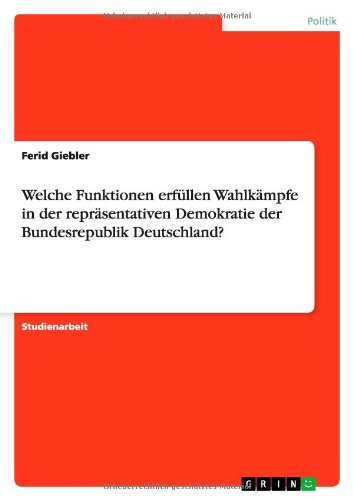 Welche Funktionen Erf�llen Wahlk�mpfe in Der Repr�sentativen Demokratie Der Bundesrepublik Deutschland? full version
