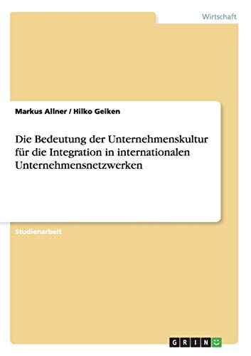 Die Bedeutung der Unternehmenskultur für die Integration in internationalen Unternehmensnetzwerken (German Edition) full version