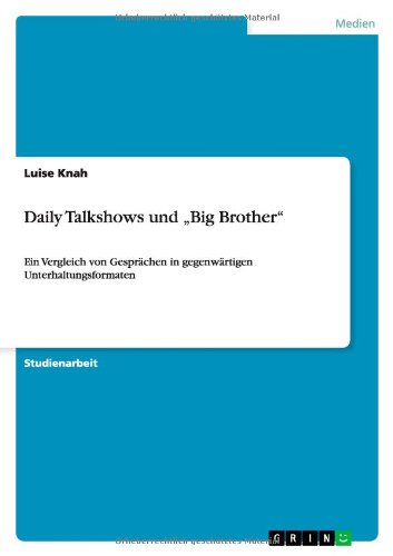 Daily Talkshows und „Big Brother": Ein Vergleich von Gesprächen in gegenwärtigen Unterhaltungsformaten (German Edition) full version