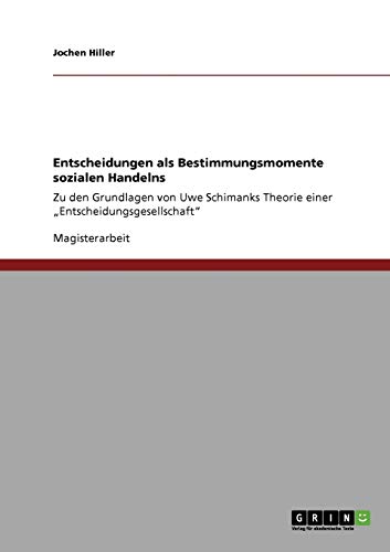 Entscheidungen als Bestimmungsmomente sozialen Handelns: Zu den Grundlagen von Uwe Schimanks Theorie einer "Entscheidungsgesellschaft" (German Edition) full version