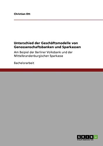 Unterschied der Geschäftsmodelle von Genossenschaftsbanken und Sparkassen: Am Beipiel der Berliner Volksbank und der Mittelbrandenburgischen Sparkasse (German Edition) full version