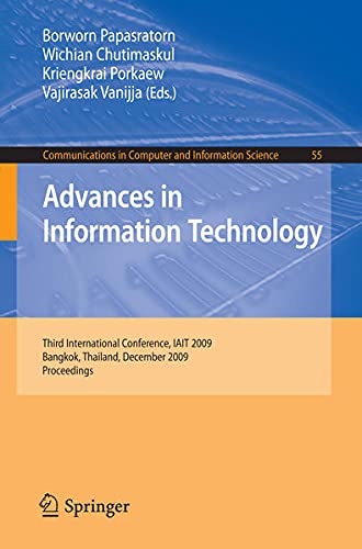 Advances in Information Technology: Third International Conference, IAIT 2009, Bangkok, Thailand, December 1-5, 2009, Proceedings (Communications in Computer and Information Science Book 55) full version