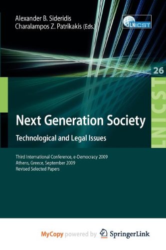 Next Generation Society Technological and Legal Issues: Third International Conference, e-Democracy 2009, Athens, Greece, September 23-25, 2009, Revised Selected Papers full version