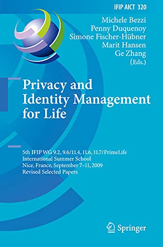 You are about to access our book library "Privacy and Identity Management for Life: 5th IFIP WG 9.2, 9.6/11.4, 11.6, 11.7/PrimeLife International Summer School, Nice, France, September 7-11, 2009, ... and Communication Technology Book 320) full version"