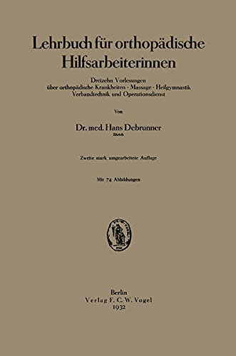 Lehrbuch für orthopädische Hilfsarbeiterinnen: Dreizehn Vorlesungen über orthopädische Krankheiten · Massage · Heilgymnastik Verbandtechnik und Operationsdienst (German Edition) full version