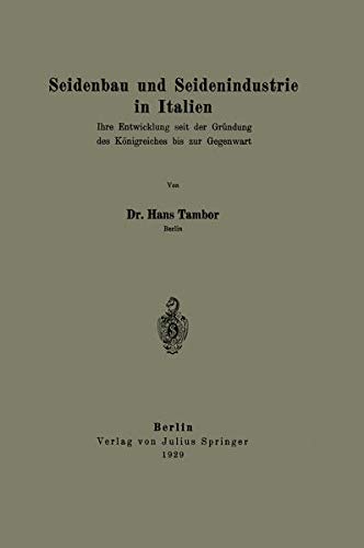 Seidenbau und Seidenindustrie in Italien: Ihre Entwicklung seit der Gründung des Königreiches bis zur Gegenwart (German Edition) full version