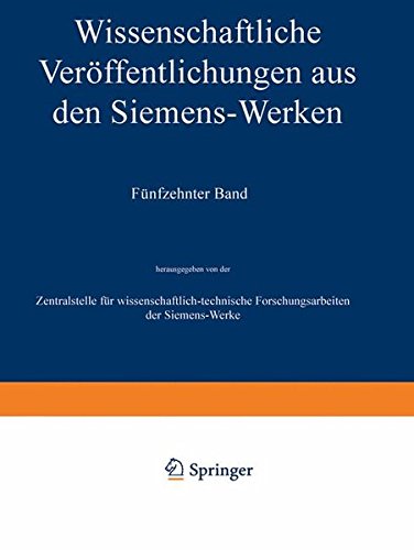 Wissenschaftliche Veröffentlichungen aus den Siemens-Werken: XV. Band Erstes Heft (abgeschlossen am 31. Dezember 1935) (German Edition) full version