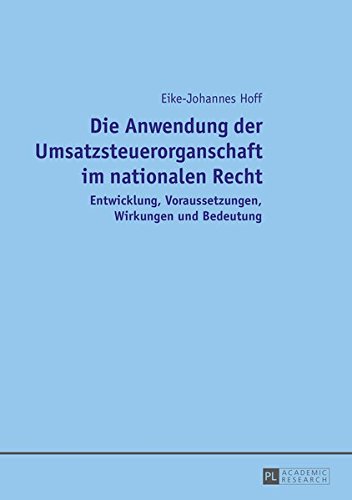 Die Anwendung der Umsatzsteuerorganschaft im nationalen Recht: Entwicklung, Voraussetzungen, Wirkungen und Bedeutung (German Edition) full version