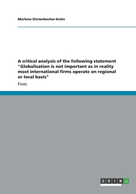 A critical analysis of the following statement "Globalisation is not important as in reality most international firms operate on regional or local basis" full version