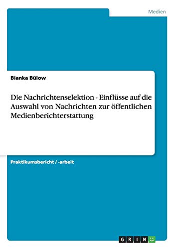 Die Nachrichtenselektion - Einflüsse auf die Auswahl von Nachrichten zur öffentlichen Medienberichterstattung (German Edition) full version