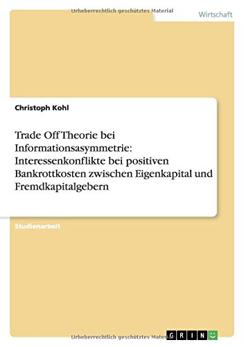 Trade Off Theorie bei Informationsasymmetrie: Interessenkonflikte bei positiven Bankrottkosten zwischen Eigenkapital und Fremdkapitalgebern (German Edition) full version
