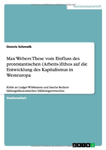 Max Webers These vom Einfluss des protestantischen (Arbeits-)Ethos auf die Entwicklung des Kapitalismus in Westeuropa: Kritik an Ludger Wößmanns und ... Erklärungsversuchen (German Edition) full version