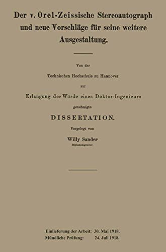 Der v. Orel-Zeissische Stereoautograph und neue Vorschläge für seine weitere Ausgestaltung (German Edition) full version