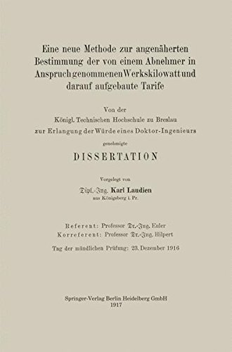 You are about to access our book library "Eine neue Methode zur angenäherten Bestimmung der von einem Abnehmer in Anspruch genommenen Werkskilowatt und darauf aufgebaute Tarife: Von der Königl. ... genehmigte Dissertation (German Edition) full version"