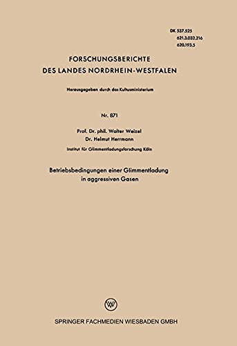 Betriebsbedingungen einer Glimmentladung in aggressiven Gasen (Forschungsberichte des Landes Nordrhein-Westfalen 871) (German Edition) full version