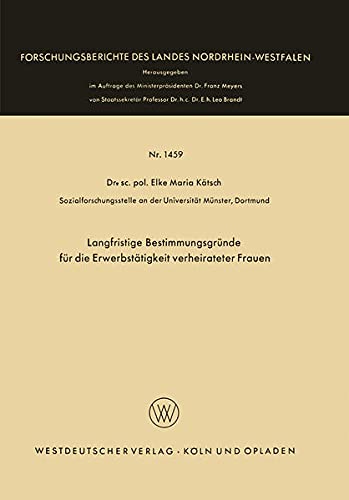 Langfristige Bestimmungsgründe für die Erwerbstätigkeit verheirateter Frauen (Forschungsberichte des Landes Nordrhein-Westfalen 1459) (German Edition) full version