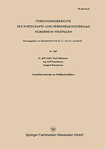 Acetylenverluste an Naßentwicklern (Forschungsberichte des Wirtschafts- und Verkehrsministeriums Nordrhein-Westfalen 569) (German Edition) full version