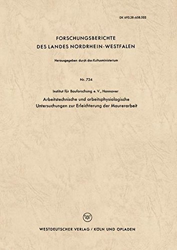 Arbeitstechnische und arbeitsphysiologische Untersuchungen zur Erleichterung der Maurerarbeit (Forschungsberichte des Landes Nordrhein-Westfalen 734) (German Edition) full version
