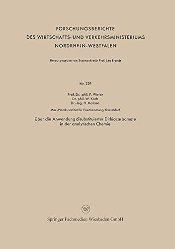 Über die Anwendung disubstituierter Dithiocarbamate in der analytischen Chemie (Forschungsberichte des Wirtschafts- und Verkehrsministeriums Nordrhein-Westfalen 229) (German Edition) full version