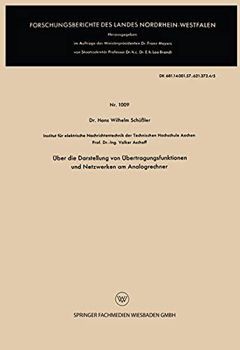 Über die Darstellung von Übertragungsfunktionen und Netzwerken am Analogrechner (Forschungsberichte des Landes Nordrhein-Westfalen 1009) (German Edition) full version