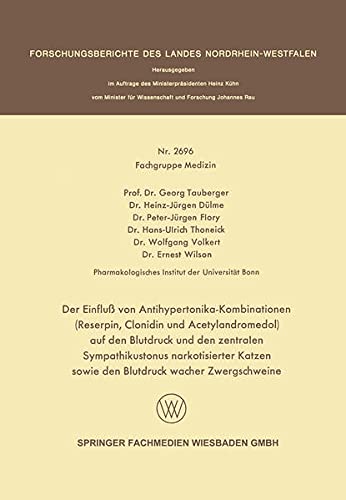 You are about to access our book library "Der Einfluß von Antihypertonika-Kombinationen (Reserpin, Clonidin und Acetylandromedol) auf den Blutdruck und den zentralen Sympathikustonus narkotisierter ... Nordrhein-Westfalen 2696) (German Edition) full version"