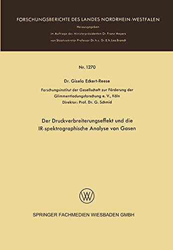 Der Druckverbreiterungseffekt und die IR-spektrographische Analyse von Gasen (Forschungsberichte des Landes Nordrhein-Westfalen 1270) (German Edition) full version