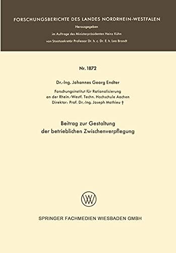 Beitrag zur Gestaltung der betrieblichen Zwischenverpflegung (Forschungsberichte des Landes Nordrhein-Westfalen 1872) (German Edition) full version