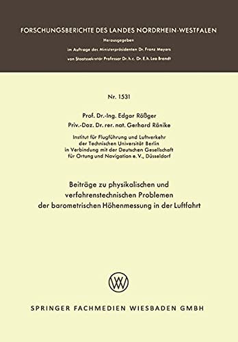 Beiträge zu physikalischen und verfahrenstechnischen Problemen der barometrischen Höhenmessung in der Luftfahrt (Forschungsberichte des Landes Nordrhein-Westfalen 1531) (German Edition) full version