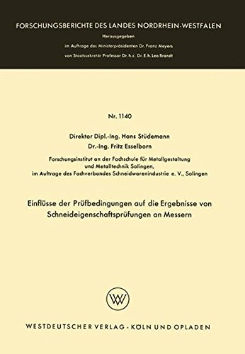 Einflüsse der Prüfbedingungen auf die Ergebnisse von Schneideigenschaftsprüfungen an Messern (Forschungsberichte des Landes Nordrhein-Westfalen 1140) (German Edition) full version