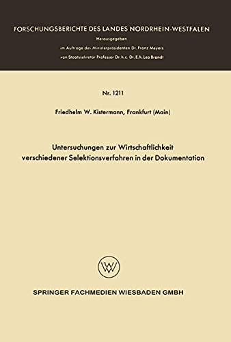 Untersuchungen zur Wirtschaftlichkeit verschiedener Selektionsverfahren in der Dokumentation (Forschungsberichte des Landes Nordrhein-Westfalen 1211) (German Edition) full version