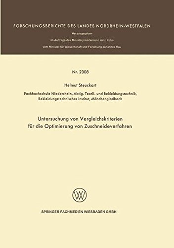 Untersuchung von Vergleichskriterien für die Optimierung von Zuschneideverfahren (Forschungsberichte des Landes Nordrhein-Westfalen 2308) (German Edition) full version