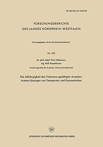 Die Abhängigkeit des Volumens gesättigter Acetylen-Aceton-Lösungen von Temperatur und Konzentration (Forschungsberichte des Landes Nordrhein-Westfalen) (German Edition) full version