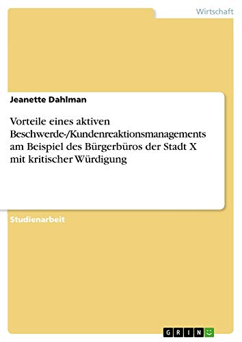 Vorteile eines aktiven Beschwerde-/Kundenreaktionsmanagements am Beispiel des Bürgerbüros der Stadt X mit kritischer Würdigung (German Edition) full version