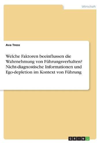 Welche Faktoren Beeinflussen Die Wahrnehmung Von Fuhrungsverhalten? Nicht-Diagnostische Informationen Und Ego-Depletion Im Kontext Von Fuhrung (German Edition) full version